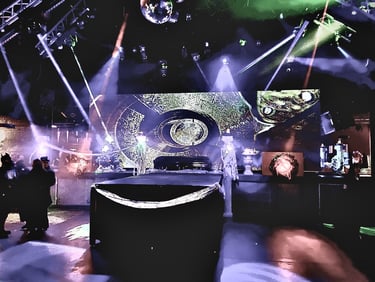large format Video effects projection for themed events, nightly DJ sets
