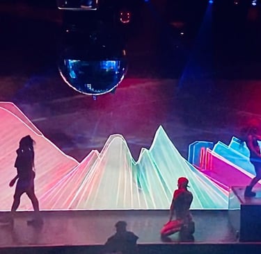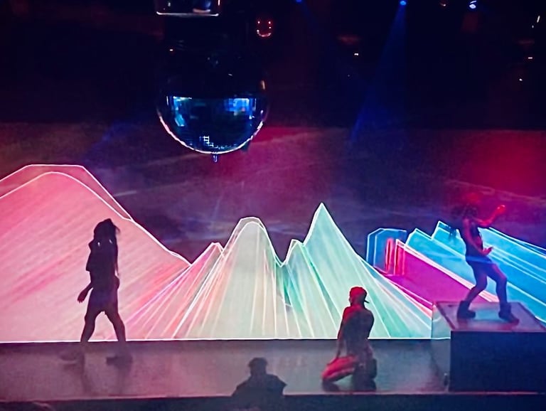 Inc. Large format video design mixing RT with Lighting systems