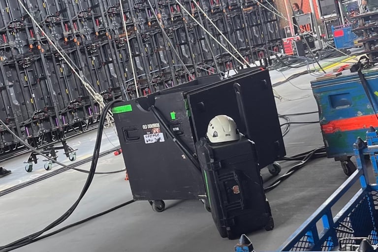 Load-in and load-out staging equipment, lighting, audio and video systems